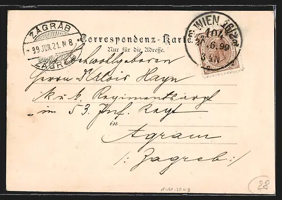 alte Ansichtskarte, gelaufen 1899, Eckknick oben re., guter Zustand
