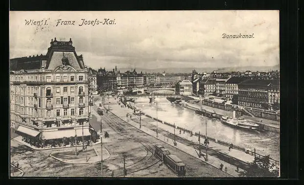 AK Wien, Franz Josefs-Quai mit Strassenbahn