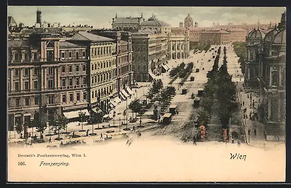 AK Wien, Franzensring mit Geschäften und Strassenbahn