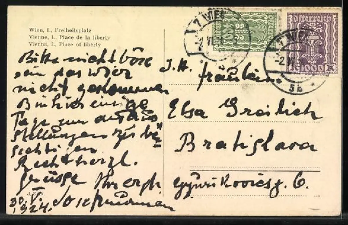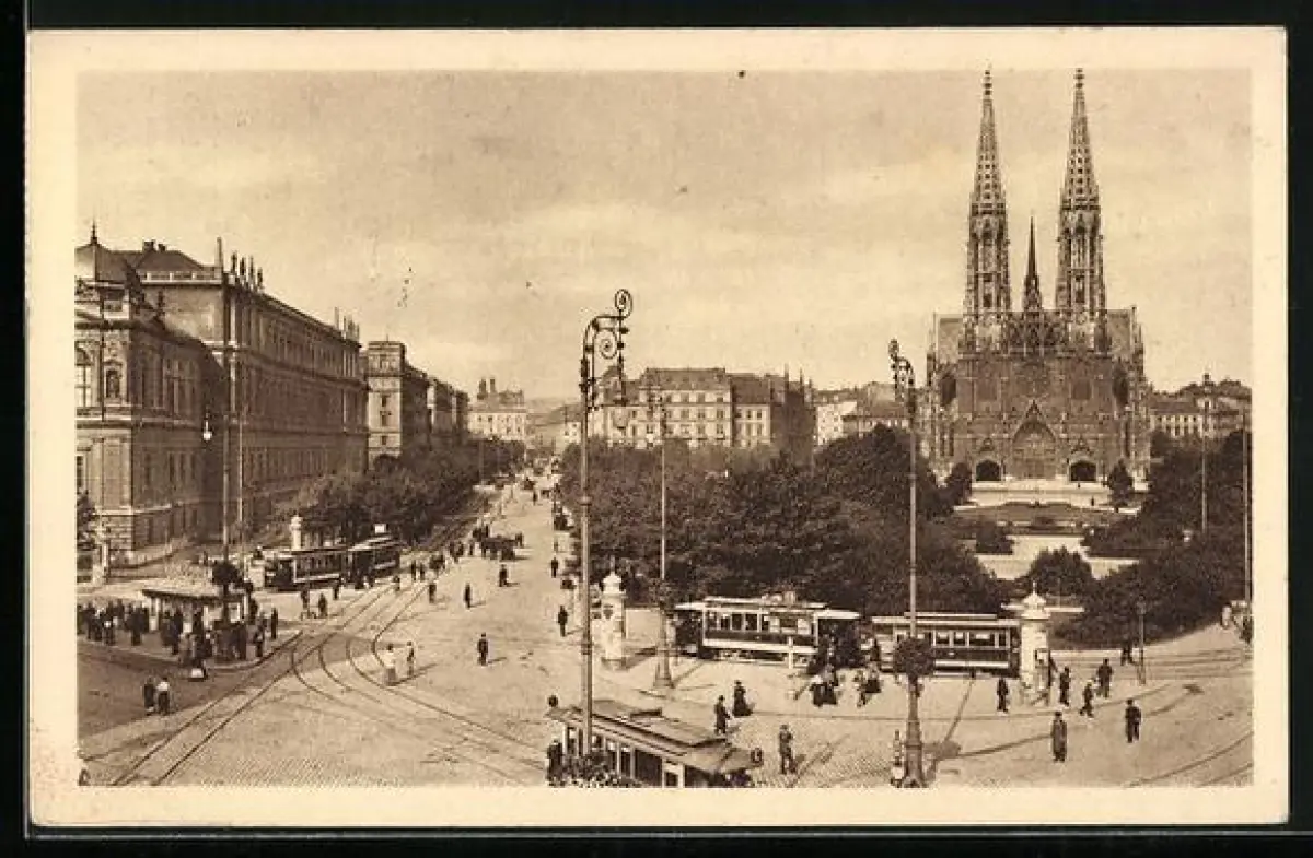 AK Wien, Freiheitsplatz mit Strassenbahnen