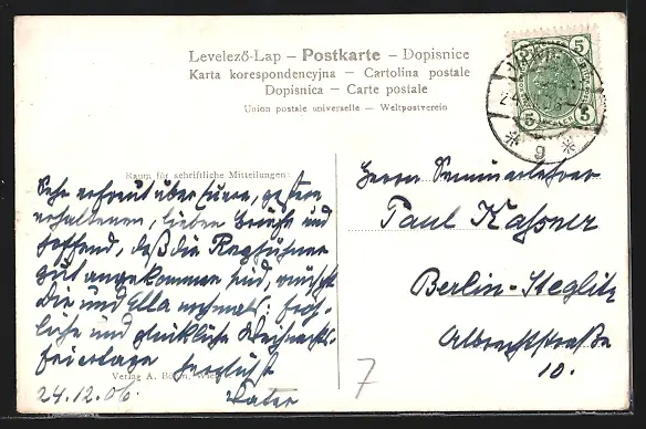 alte Ansichtskarte, gelaufen 1906, guter Zustand