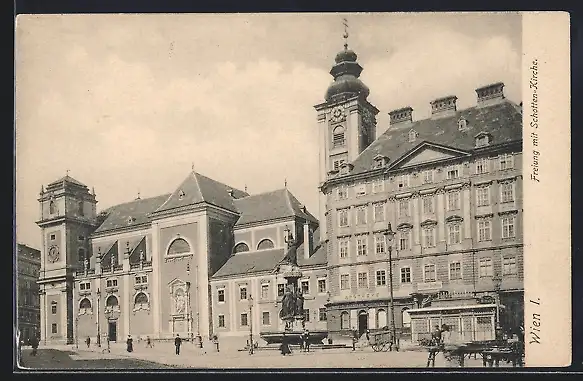 AK Wien, Freiung mit Schotten-Kirche und Brunnen