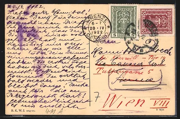 gelaufen 1922, Bugspur re. oben, guter Zustand