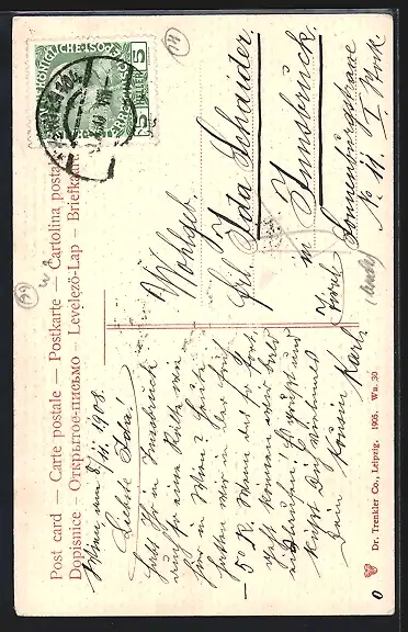 alte Ansichtskarte, gelaufen 1908, Stempelspur, guter Zustand