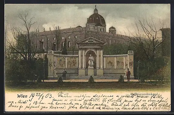 AK Wien, Frontalansicht des Grillparzerdenkmals