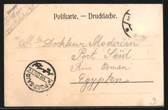 alte Ansichtskarte, gelaufen 1906, Briefmarke entfernt, rückseitig Oberflächenschaden, guter Zustand