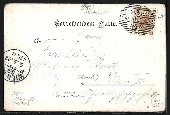 alte Ansichtskarte, gelaufen 1898, guter Zustand