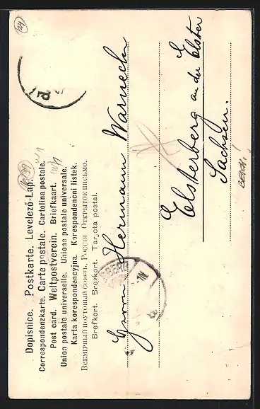 alte Ansichtskarte, gelaufen, Briefmarke entfernt, rückseitig Oberflächenschaden, guter Zustand