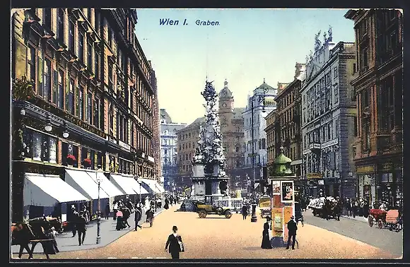 AK Wien, Graben, Partie mit Passanten und Litfasssäule