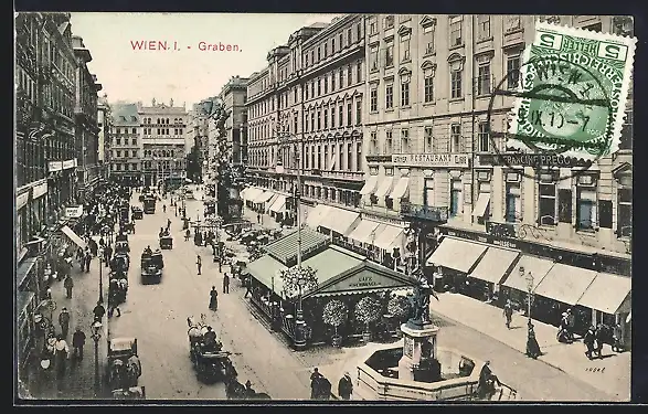 AK Wien, Graben, belebte Partie mit Brunnen und Café Schrancl
