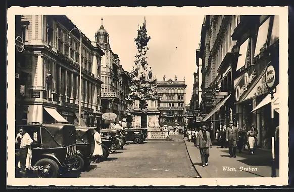 AK Wien, Graben mit Geschäften und Denkmal