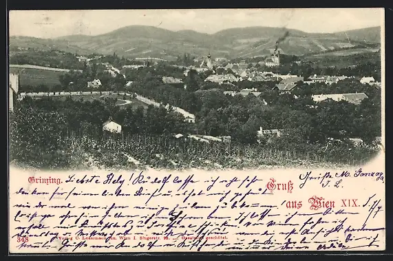 AK Wien-Grinzing, Blick von einer Anhöhe auf den Stadtteil
