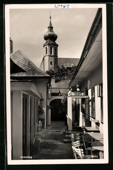AK Wien-Grinzing, Ortspartie mit Gasthaus und Kirche