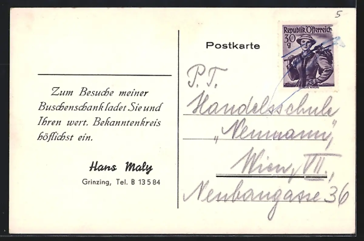 AK Wien, Grinzing, Restaurant Hans Maly, Sandgasse 8
