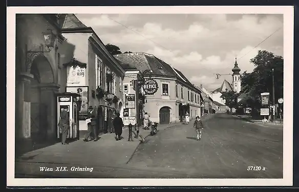 AK Wien-Grinzing, Strassenpartie mit Heuriger Hengl