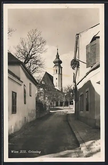 AK Wien, Grinzing, Strassenpartie mit Kirche