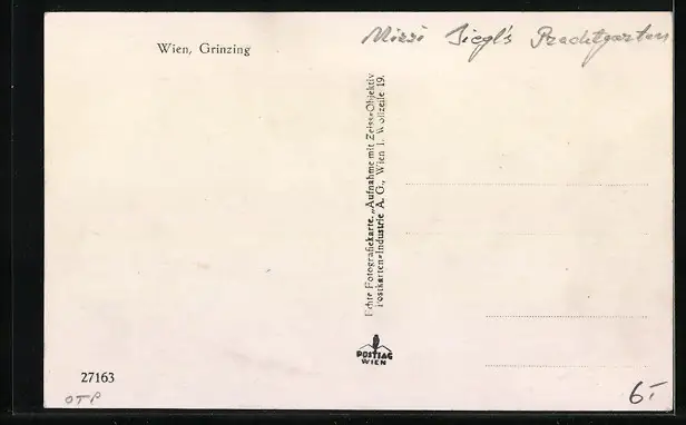 AK Wien-Grinzing, Strassenpartie mit Rizzi Siegls Prachtgarten