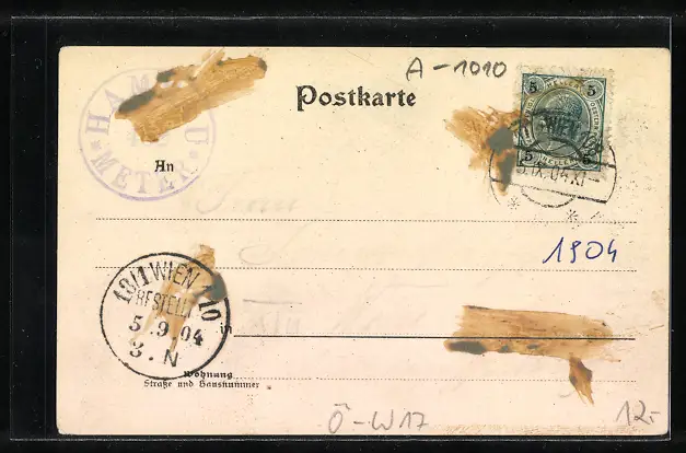 gelaufen 1904, rückseitig Klebe- und Papierreste, Stempelspur, guter Zustand