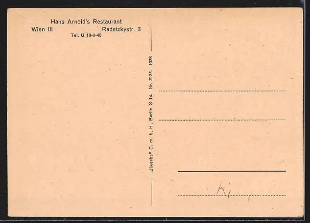AK Wien, Hans Arnolds Restaurant, Radetzkystrasse 3