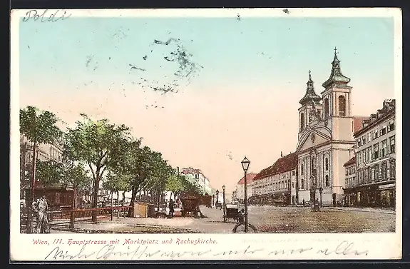 AK Wien, Hauptstrasse mit Marktplatz und Rochuskirche