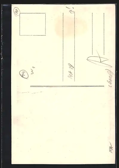 Personenbezogene Daten auf der Rückseite der Karte wurden durch blauen Textmarker unkenntlich gemacht. Die blauen Stellen sind auf die Vorderseite durchgeweicht und wirken sich negativ auf das Postkartenfoto aus