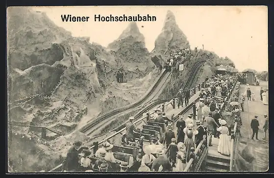 AK Wien, Hochschaubahn mit Passagieren, Wiener Prater