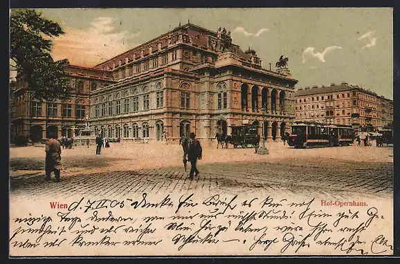 AK Wien, Hof-Opernhaus mit Strassenbahn
