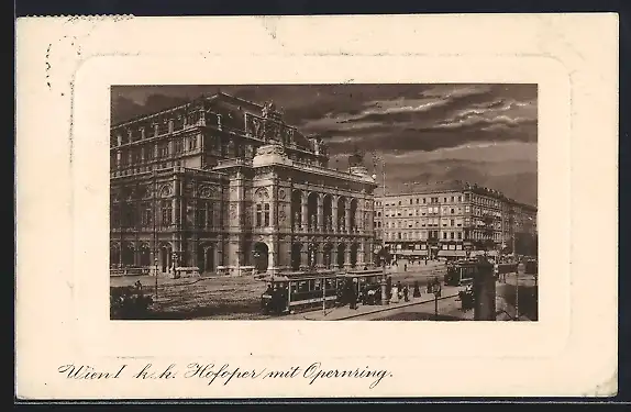 AK Wien, Hofoper mit Opernring, Strassenbahn-Haltestelle