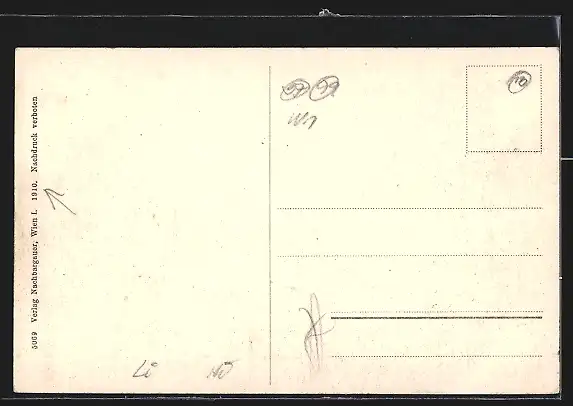 Personenbezogene Daten auf der Rückseite der Karte wurden durch blauen Textmarker unkenntlich gemacht. Die blauen Stellen sind auf die Vorderseite durchgeweicht und wirken sich negativ auf das Postkartenfoto aus