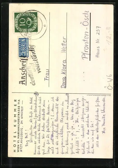 AK Wien, Hotel Kummer, Mariahilferstrasse 71a