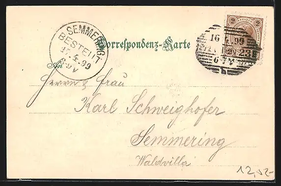 alte Ansichtskarte, gelaufen 1899, Eckknick re. oben, guter Zustand