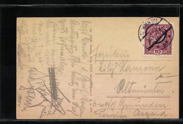 alte Ansichtskarte, gelaufen 1919, Eckknick li. oben, Einriss re. mittig, guter Zustand