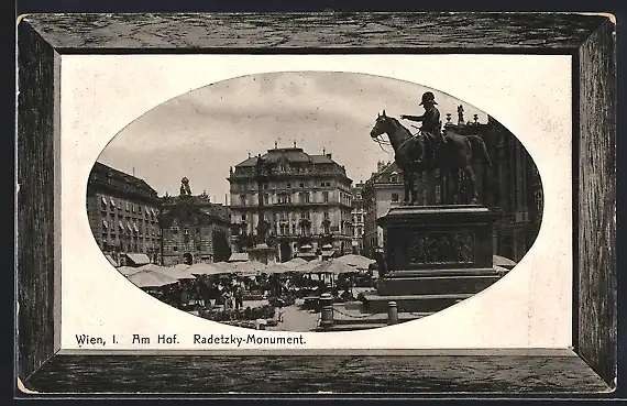AK Wien I, Am Hof, Markttreiben vor dem Denkmal