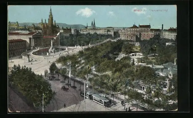 AK Wien I., Franzensring aus der Vogelschau, Strassenbahn