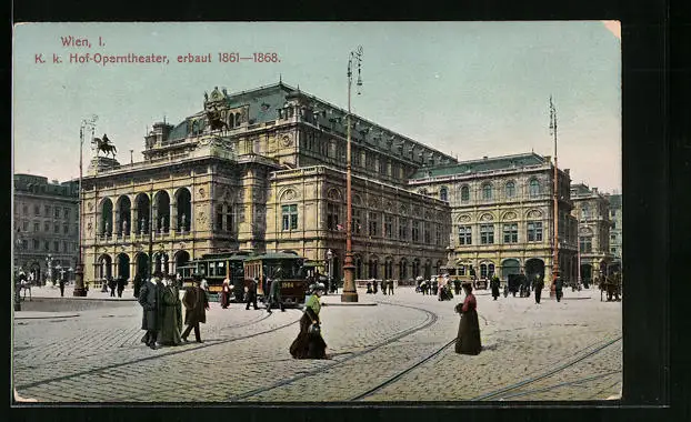 AK Wien, I. K. K. Hof-Operntheater, Strassenbahn und Passanten