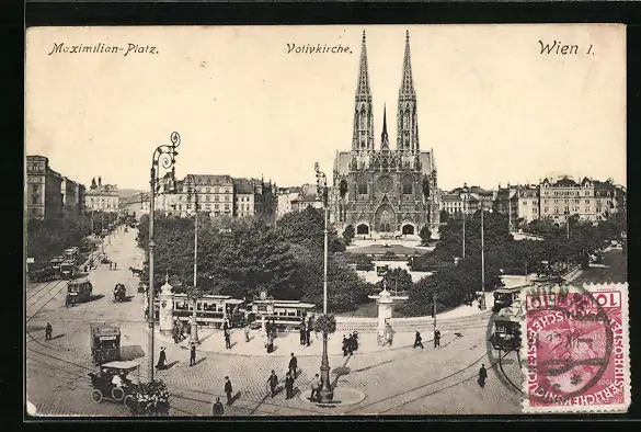AK Wien I., Maximilian-Platz mit Votiv-Kirche und Strassenbahn
