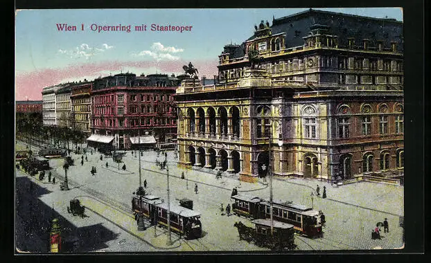 AK Wien I., Opernring mit Staatsoper und Strassenbahnen