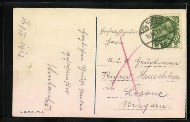alte Ansichtskarte, gelaufen 1913, Stempelspur, guter Zustand