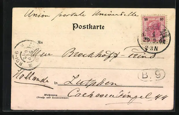 gelaufen 1902, Eckknick rechts oben, guter Zustand
