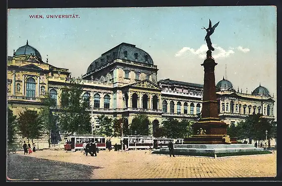 AK Wien I, Universität mit Liebenberg-Denkmal, Leute, Strassenbahn
