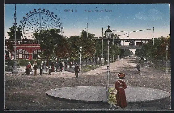 AK Wien II, Prater-Haupt-Allee m. Riesenrad