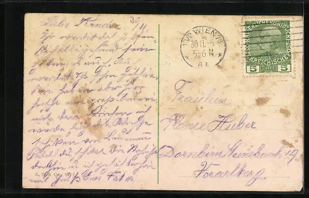alte Ansichtskarte, gelaufen 1915, Stempelspur, Eckknick links unten, guter Zustand