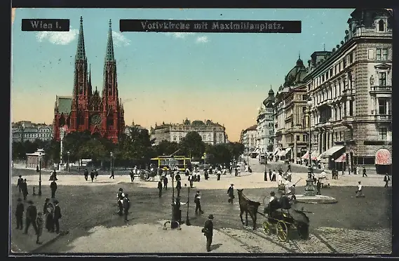 AK Wien IX., Maximilianplatz mit Votivkirche und Strassenbahn