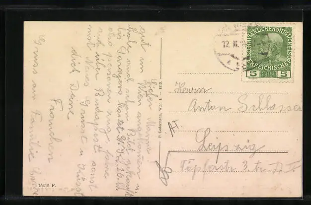 alte Ansichtskarte, gelaufen 1914, Eckknick links oben, guter Zustand