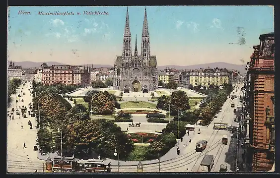 AK Wien IX, Maximilianplatz und Votivkirche, Strassenbahn