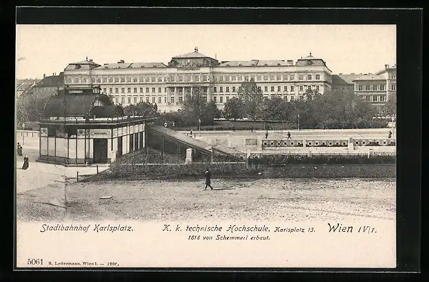 AK Wien, K. K. technische Hochschule am Karlsplatz 13, Stadtbahnhof Karlsplatz
