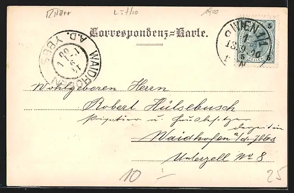 alte Ansichtskarte, gelaufen 1900, Eckknicke oben, guter Zustand