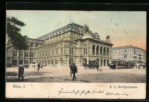 AK Wien, K. k. Hof-Opernhaus mit Strassenbahn