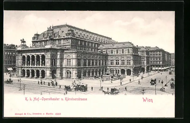 AK Wien, K. k. Hof-Operntheater und Kärntnerstrasse, Strassenbahn