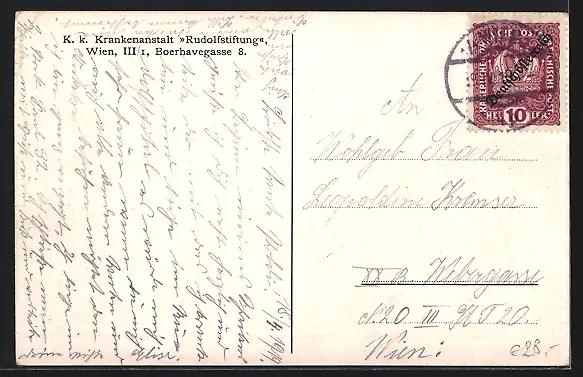 AK Wien, K. k. Krankenanstalt Rudolfsstiftung in der Boerhavegasse 8
